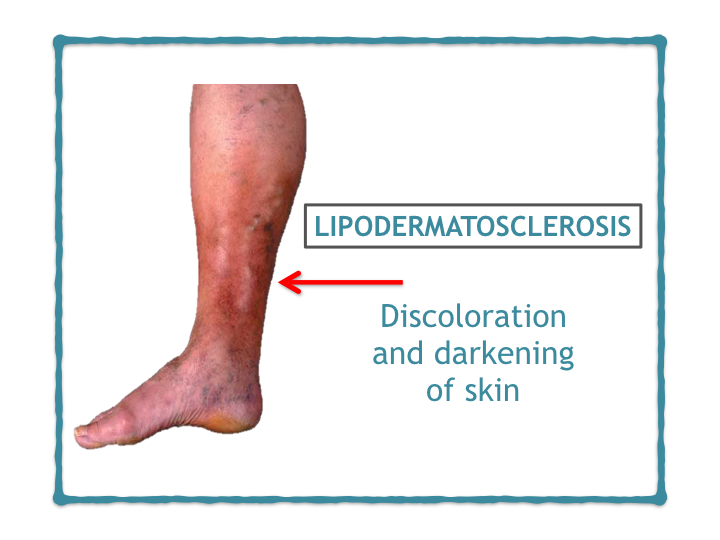 In more severe cases, venous insufficiency and reflux can cause darkening of the skin (hyperpigmantation), especially in the lower third of the leg and around the ankle region.